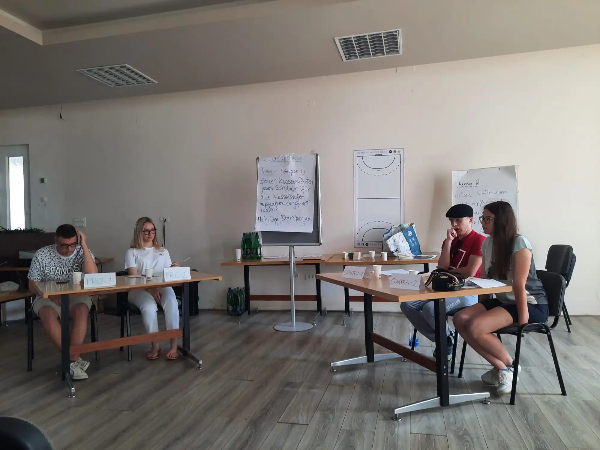 Dvije učenice naše gimnazije, Dea Lugarić (3. a) i Ana Hluchý (3. f), plasirale su se u polufinale državne debate na njemačkom jeziku – Jugend debattiert international – te su tako izborile online trening u debati, te još dodatni jezični pripremni trening u prekrasnom Zadru od 22.5.2022. do 24.5.2022.