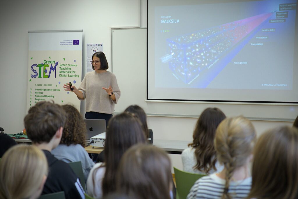 Što želim postati u životu? Astrofizičarka! Takav odgovor u djetinjstvu nije imala čak ni naša gošća prof. Vernesa Smolčić koju smo pozvali da nam ispriča svoje životno putovanje na obilježavanju Dana Ade Lovelace. Kako nas je poučila sama Ada – samo nebo je granica – za našu gošću čak ni to ne vrijedi! Prof. Vernesa Smolčić, astrofizičarka i red. profesorica na Fizičkom odsjeku Prirodoslovno-matematičkog fakulteta u Zagrebu, odvela nas je na putovanje svemirom, čuli smo kako je svemir nastao, koliko je star, što se zbiva u najmračnijem njegovu kutku i kako se mapira onaj neistraženi dio crnog neba. Kakav je život međunarodno priznate znanstvenice? Uzbudljiv, zagonetan, ispunjen brojnim putovanjima, nebrojenim pitanjima i potragom za odgovorima. Nakon zvjezdanog druženja s prof. Smolčić, zahvalni što je s nama podijelila dio svoga svemira, vjerujemo da se u nekim glavama pojavio odgovor – astrofizičar/ka!