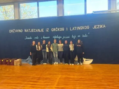 Na Državnom natjecanju iz latinskog jezika, održanom od 22. do 24. travnja 2026. na Krku, našu je školu predstavljalo čak 8 učenika od ukupno 19 natjecatelja u kategoriji gimnazija – izniman uspjeh i veliki ponos za cijelu školu! 🥳