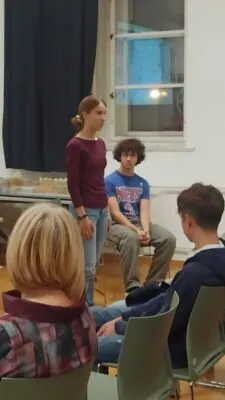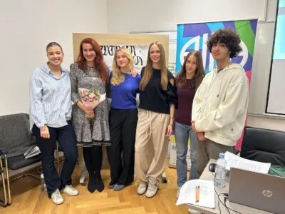 Učenici prvih razreda – Filip Greiner (1. e) i Lara Lojpur (1. d) oduševili su nas svojom dramskom izvedbom, a učenice Anja Filko (3. a), Maja Kurdija (3. b) i Karla Sviben (2. e) vješto su moderirale cijeli razgovor.