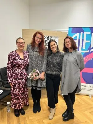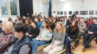 U srijedu, 5. studenoga, u našoj je školi održan jedan zanimljiv i inspirativan književni susret s gošćom – književnicom Magdalenom Mrčelom. U prepunoj svečanoj sali skupilo se sedamdesetak učenika, a na susretu su, uz naše učenike, sudjelovali i gosti – učenici Gimnazije Miroslava Krleže iz Pečuha. Program je bio bogat i raznovrstan, a posebno su se istaknuli učenici prvih razreda koji su, čitajući njezin roman Zlatarova kletva kao izbornu lektiru, pripremili videonajave: Nika Vugrinec i Stella Kovačević (1. b) te Laura Nevistić, Mirta Živković i Katja Barković (1. c).