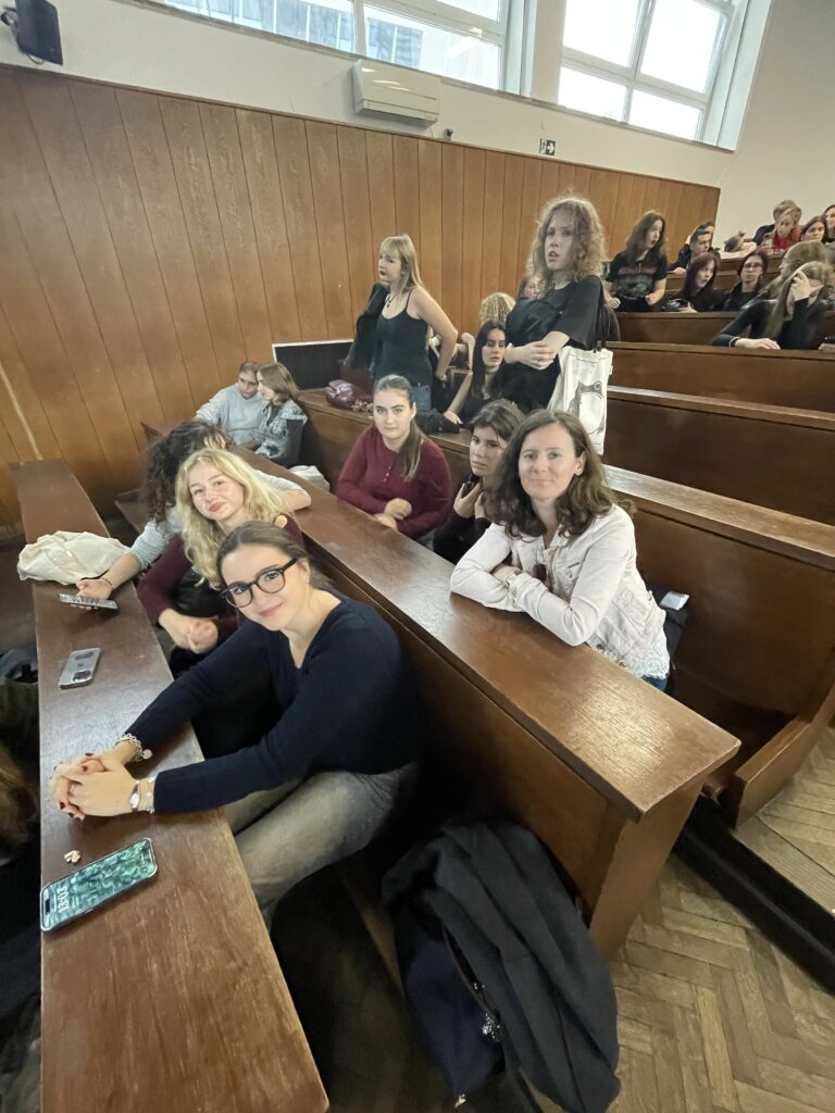 Učenici V. gimnazije, u pratnji svojih profesorica hrvatskoga jezika (Katarina Dinješ, Nikolina Vrkić Dilberović, Zorica Jurčević i Sara Štivčević Bajramović), posjetili su 26. rujna 2025. Festival jezika na Filozofskom fakultetu.