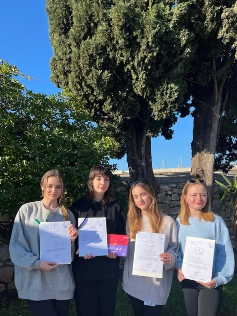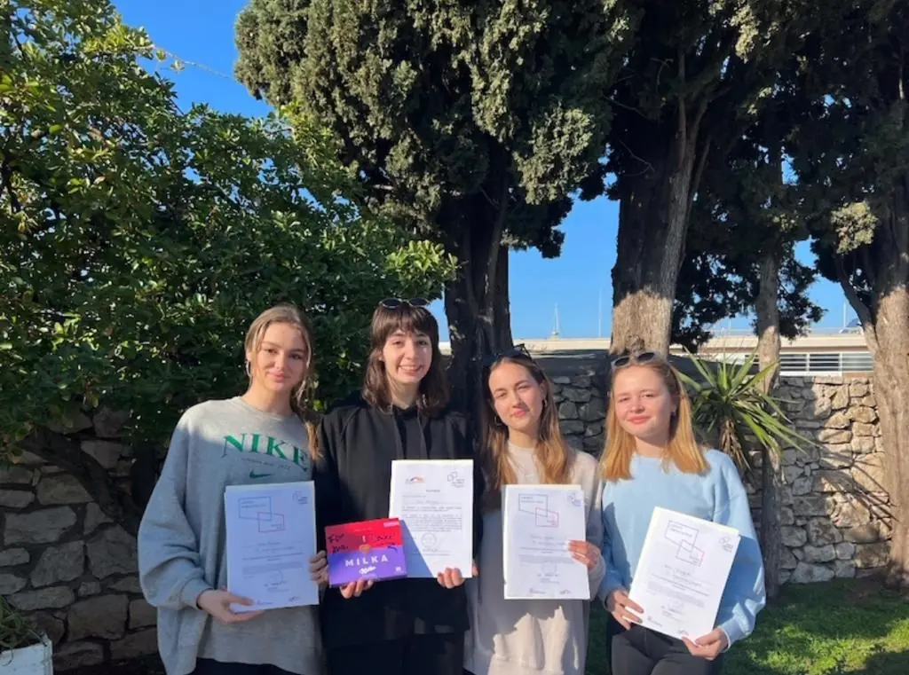 Tri učenice 3. A razreda V. gimnazije, Terezia Lukić, Nina Padovan i Petra Jakupak, bile su pozvane od 2. – 5. 3.2023. na izlučno državno natjecanje u debati na njemačkom jeziku, koje se za 24 pozvana učenika Republike Hrvatske održalo u Zadru.